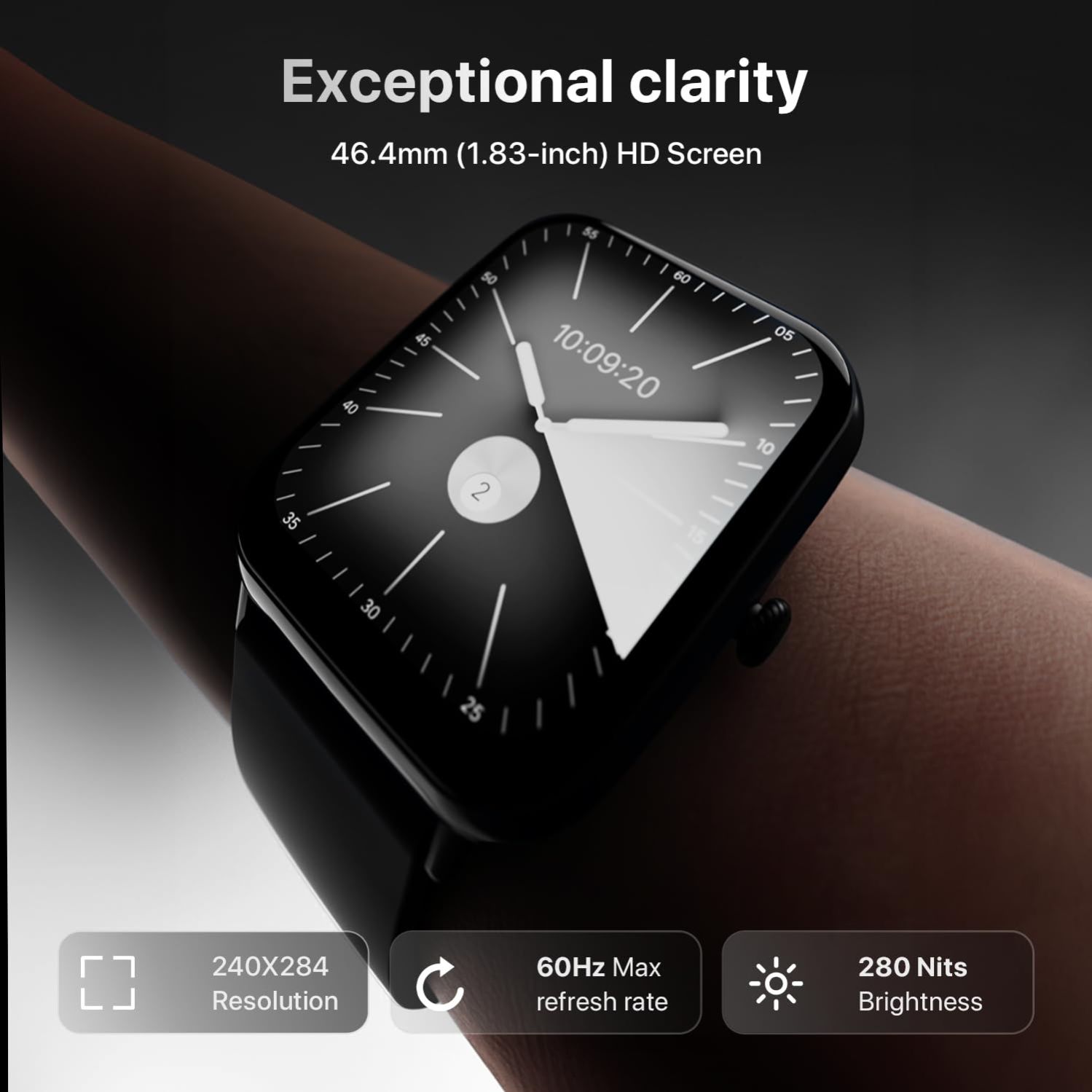 - LARGE 1.83” HD DISPLAY WITH BRIGHT VISIBILITY – Enjoy a stunning 1.83-inch HD screen with 280 NITS peak brightness and vivid color clarity. Whether indoors or outdoors, with smart watch for woman experience sharp visuals and smooth touch interaction all day long.