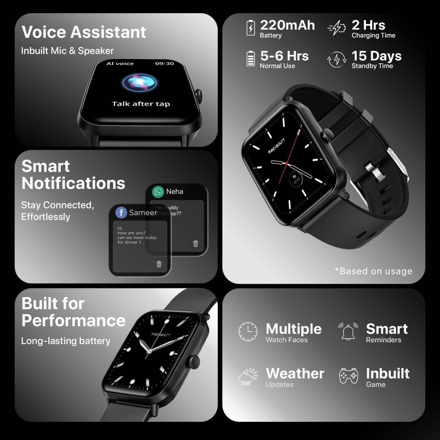 - MULTIPLE SMART FEATURES & IP67 WATER RESISTANCE – Includes built-in mic & speaker, alarm, games, music player, notifications, find phone, time display, and IP67 rating for water and dust resistance. Built for every lifestyle.